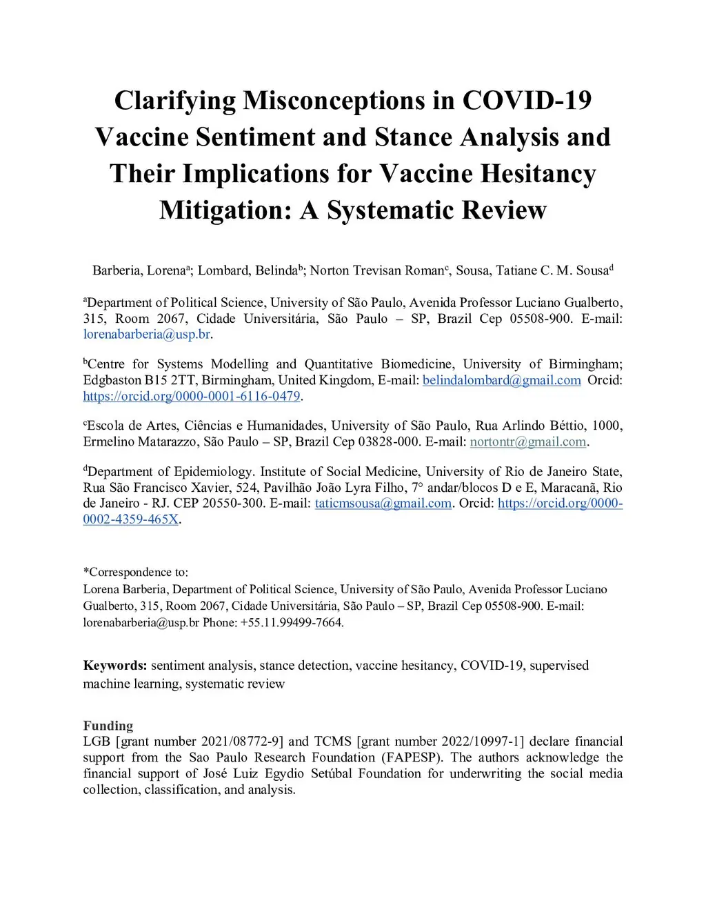 Clarifying Misconceptions in COVID-19 Vaccine Sentiment and Stance Analysis and Their Implications for Vaccine Hesitancy Mitigation: A Systematic Review
