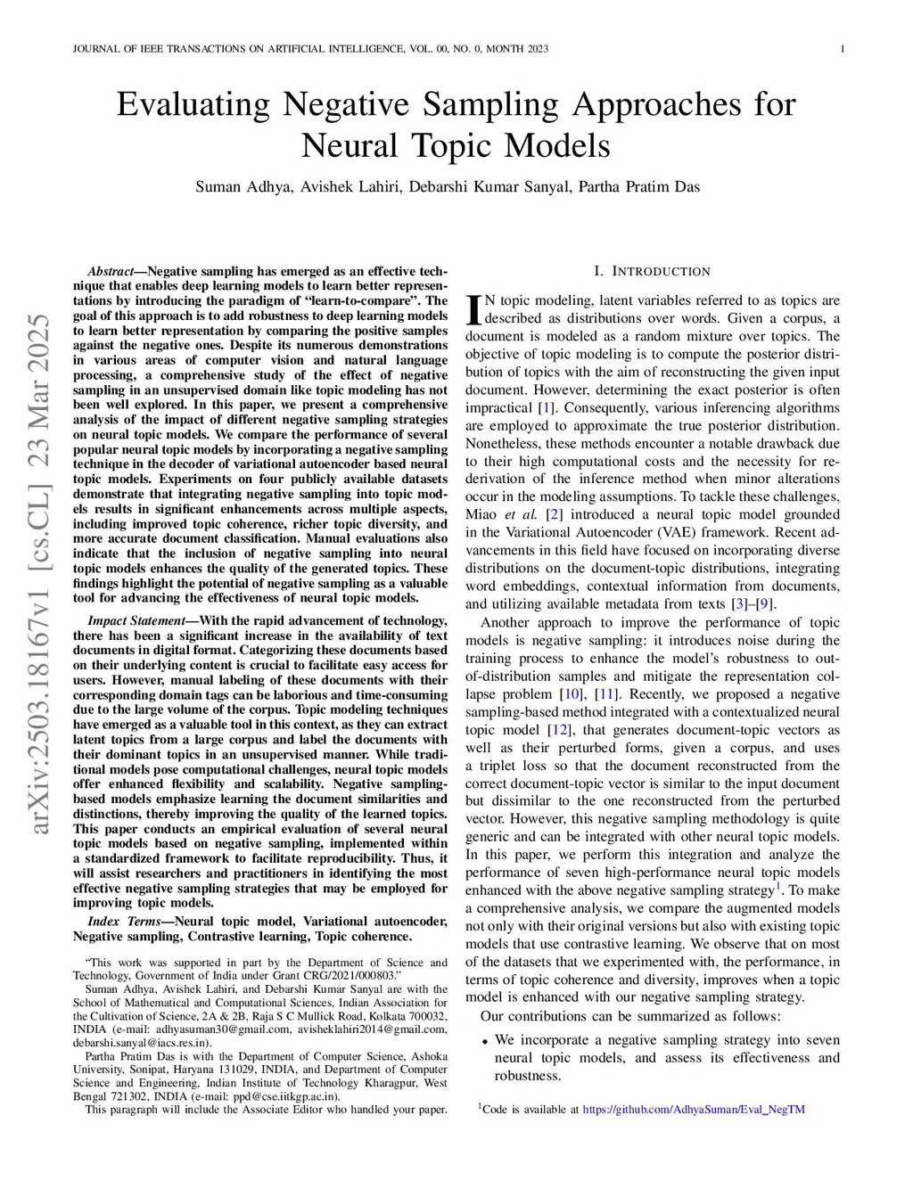 Evaluating Negative Sampling Approaches for Neural Topic Models