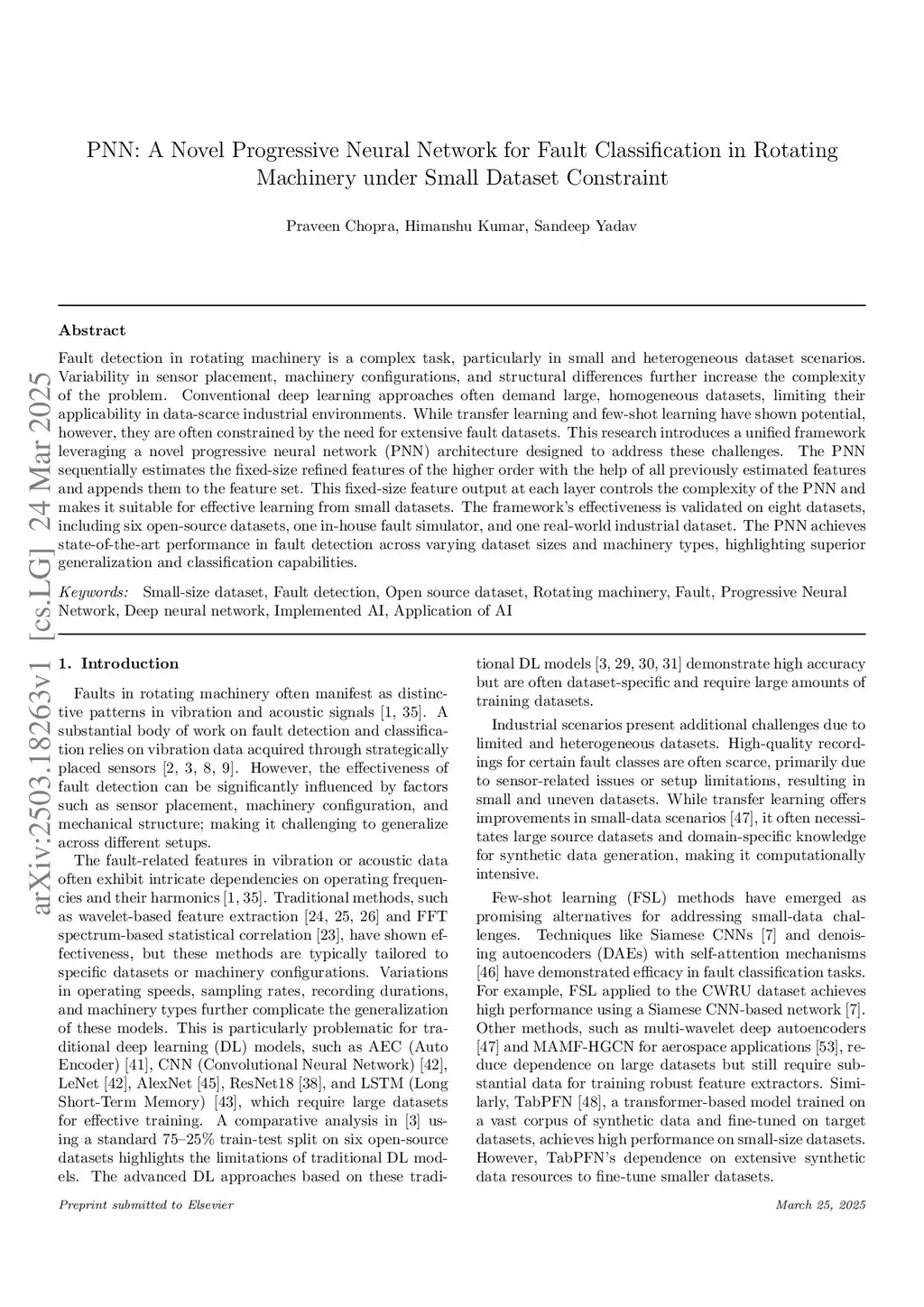 PNN: A Novel Progressive Neural Network for Fault Classification in Rotating Machinery under Small Dataset Constraint