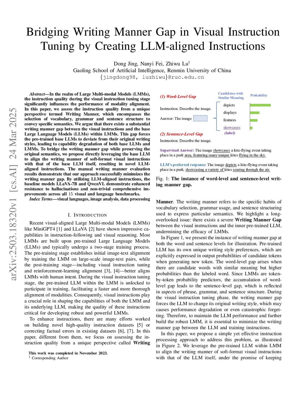 In the realm of Large Multi-modal Models (LMMs), the instruction quality during the visual instruction tuning stage significantly influences the performance of modality alignment. In this paper, we assess the instruction quality from a unique perspective termed \textbf{Writing Manner}, which encompasses the selection of vocabulary, grammar and sentence structure to convey specific semantics. We argue that there exists a substantial writing manner gap between the visual instructions and the base Large Language Models (LLMs) within LMMs. This gap forces the pre-trained base LLMs to deviate from their original writing styles, leading to capability degradation of both base LLMs and LMMs. To bridge the writing manner gap while preserving the original semantics, we propose directly leveraging the base LLM to align the writing manner of soft-format visual instructions with that of the base LLM itself, resulting in novel LLM-aligned instructions. The manual writing manner evaluation results demonstrate that our approach successfully minimizes the writing manner gap. By utilizing LLM-aligned instructions, the baseline models LLaVA-7B and QwenVL demonstrate enhanced resistance to hallucinations and non-trivial comprehensive improvements across all visual and language benchmarks.