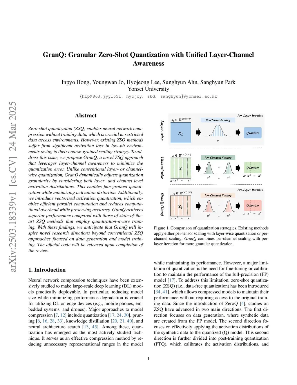 GranQ: Granular Zero-Shot Quantization with Channel-Wise Activation Scaling in QAT