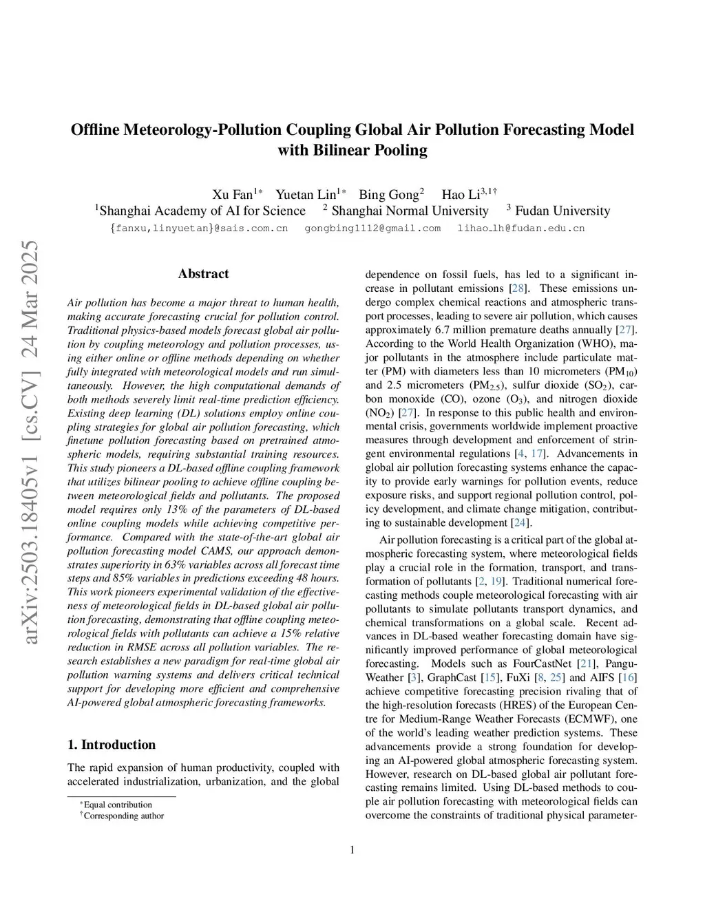 Offline Meteorology-Pollution Coupling Global Air Pollution Forecasting Model with Bilinear Pooling