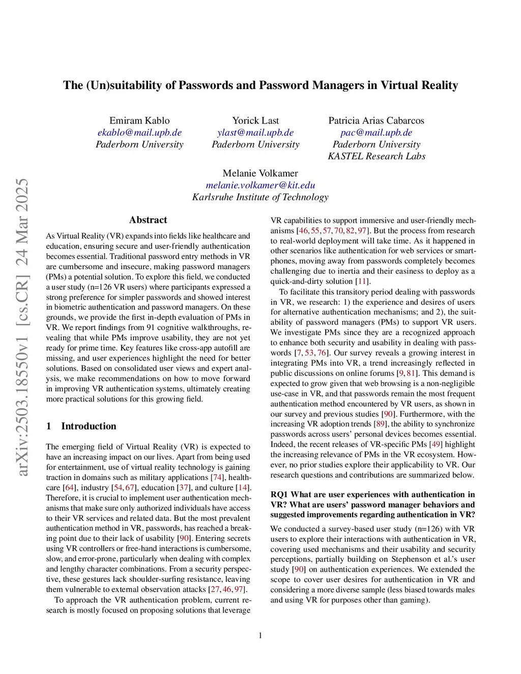 The (Un)suitability of Passwords and Password Managers in Virtual Reality