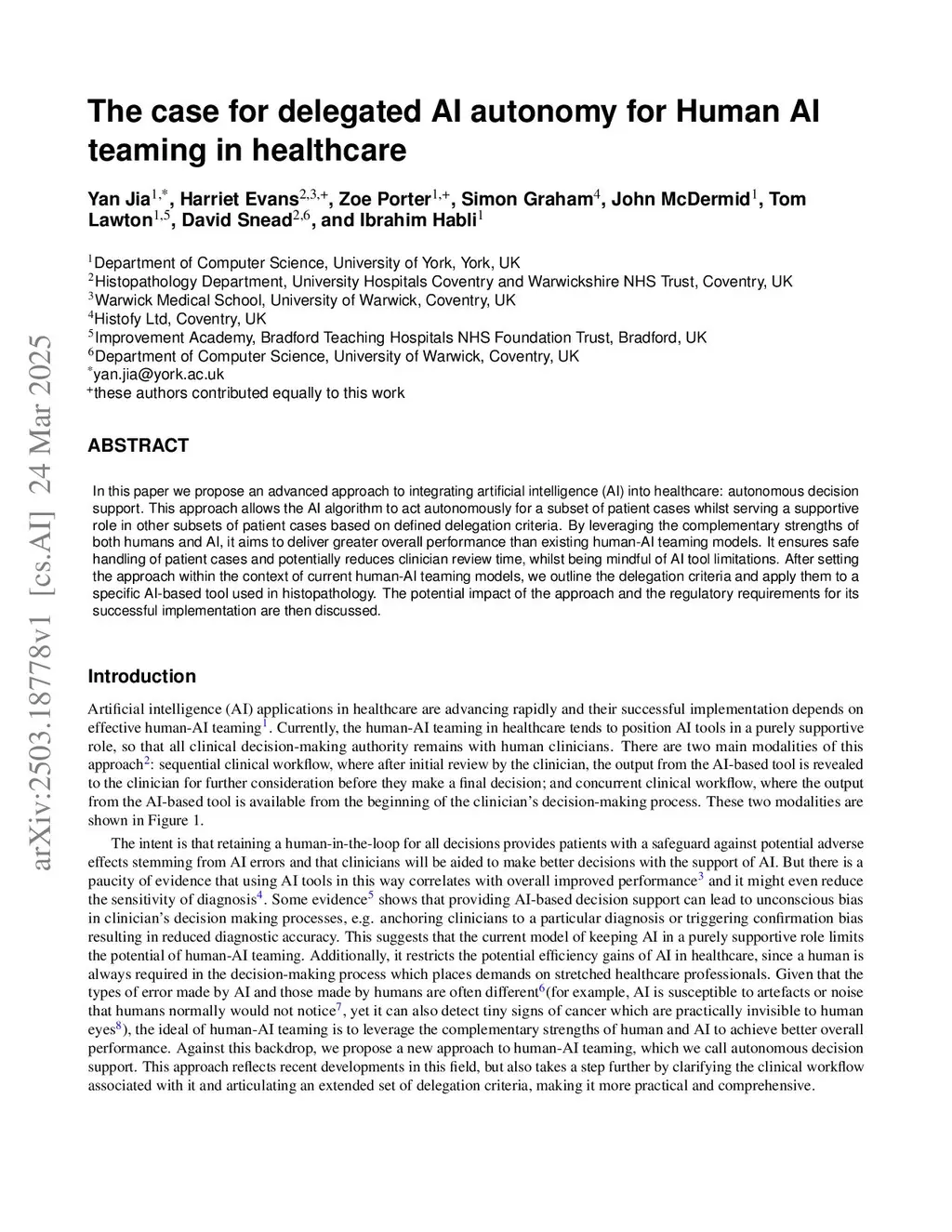 The case for delegated AI autonomy for Human AI teaming in healthcare