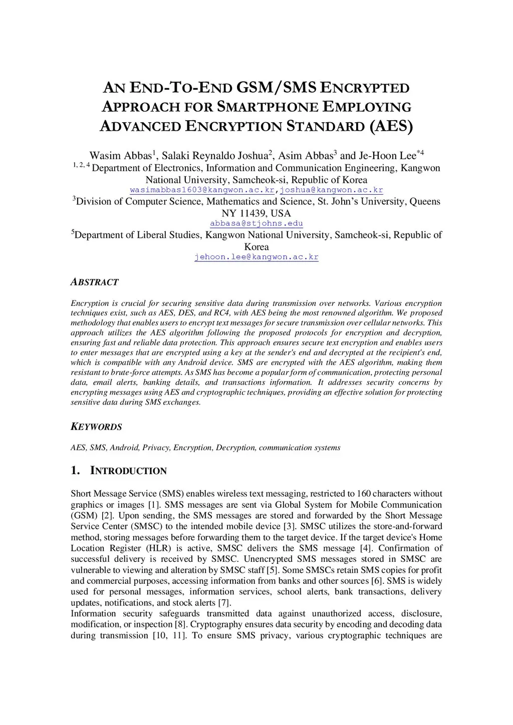 An End-to-End GSM/SMS Encrypted Approach for Smartphone Employing Advanced Encryption Standard(AES)