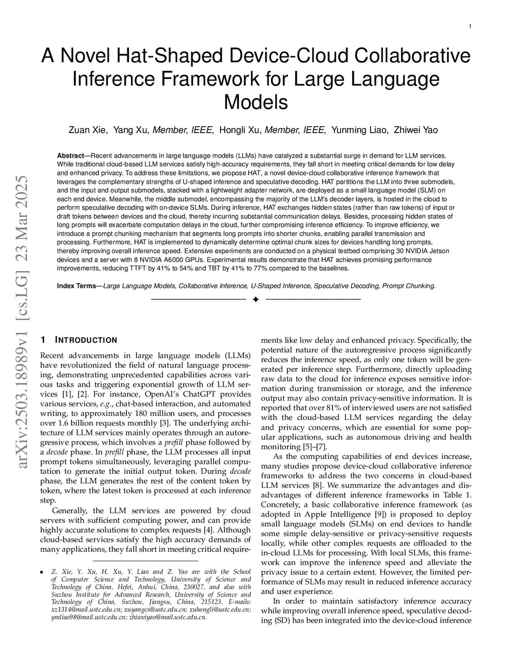 A Novel Hat-Shaped Device-Cloud Collaborative Inference Framework for Large Language Models