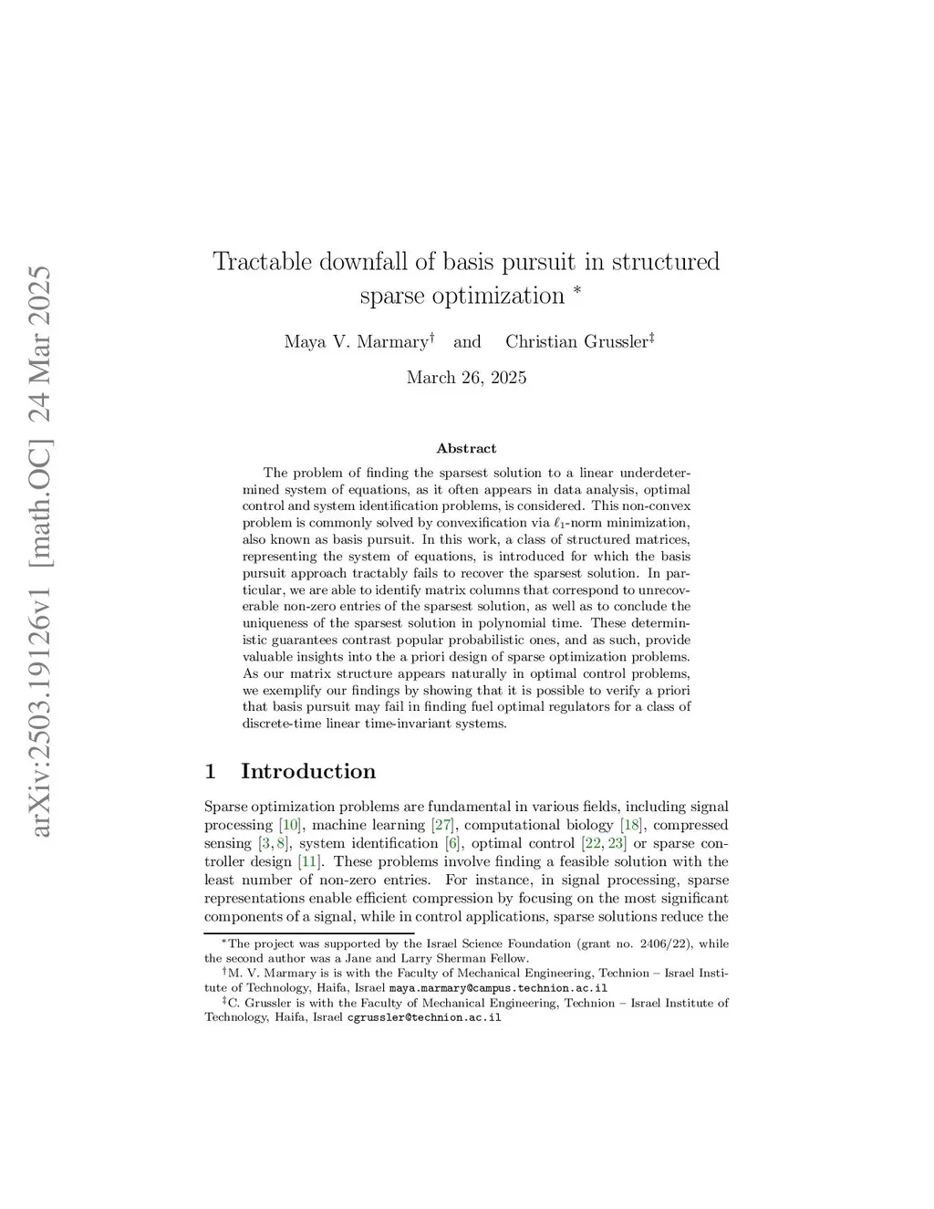 The problem of finding the sparsest solution to a linear underdetermined system of equations, often appearing, e.g., in data analysis, optimal control, system identification, or sensor selection problems, is considered. This non-convex problem is commonly solved by convexification via -norm minimization, known as basis pursuit (BP). In this work, a class of structured matrices, representing the system of equations, is introduced for which (BP) tractably fails to recover the sparsest solution. In particular, this enables efficient identification of matrix columns corresponding to unrecoverable non-zero entries of the sparsest solution and determination of the uniqueness of such a solution. These deterministic guarantees complement popular probabilistic ones and provide insights into the a priori design of sparse optimization problems. As our matrix structures appear naturally in optimal control problems, we exemplify our findings based on a fuel-optimal control problem for a class of discrete-time linear time-invariant systems. Finally, we draw connections of our results to compressed sensing and common basis functions in geometric modeling.