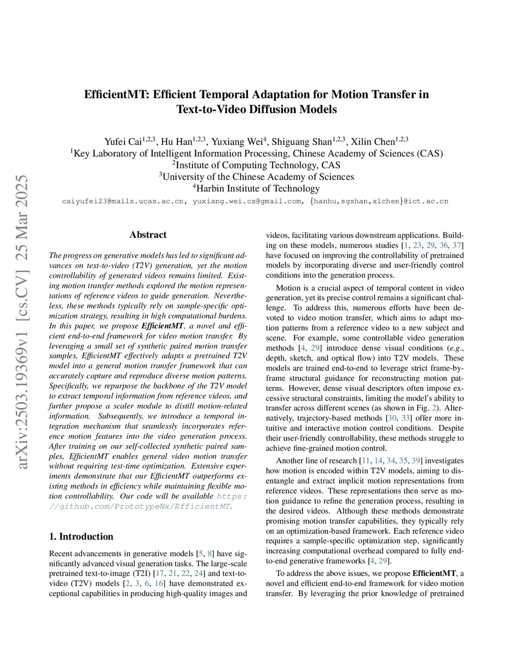 EfficientMT: Efficient Temporal Adaptation for Motion Transfer in Text-to-Video Diffusion Models