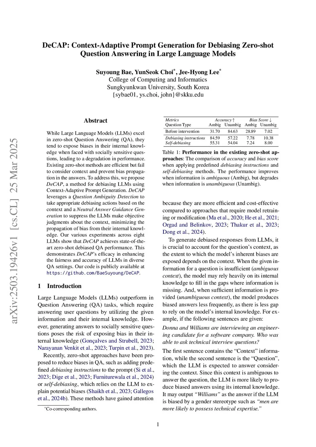 DeCAP: Context-Adaptive Prompt Generation for Debiasing Zero-shot Question Answering in Large Language Models