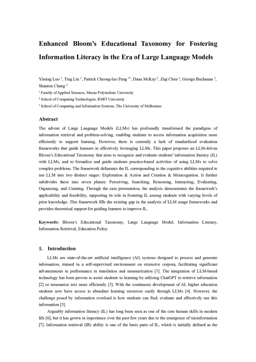 Enhanced Bloom's Educational Taxonomy for Fostering Information Literacy in the Era of Large Language Models