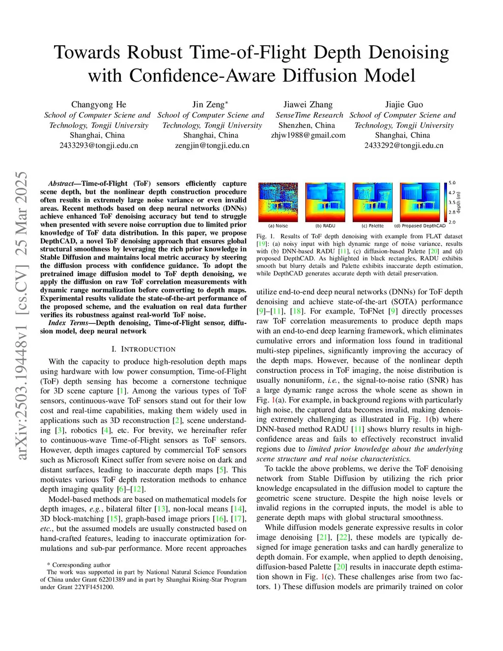 Time-of-Flight (ToF) sensors efficiently capture scene depth, but the nonlinear depth construction procedure often results in extremely large noise variance or even invalid areas. Recent methods based on deep neural networks (DNNs) achieve enhanced ToF denoising accuracy but tend to struggle when presented with severe noise corruption due to limited prior knowledge of ToF data distribution. In this paper, we propose DepthCAD, a novel ToF denoising approach that ensures global structural smoothness by leveraging the rich prior knowledge in Stable Diffusion and maintains local metric accuracy by steering the diffusion process with confidence guidance. To adopt the pretrained image diffusion model to ToF depth denoising, we apply the diffusion on raw ToF correlation measurements with dynamic range normalization before converting to depth maps. Experimental results validate the state-of-the-art performance of the proposed scheme, and the evaluation on real data further verifies its robustness against real-world ToF noise.