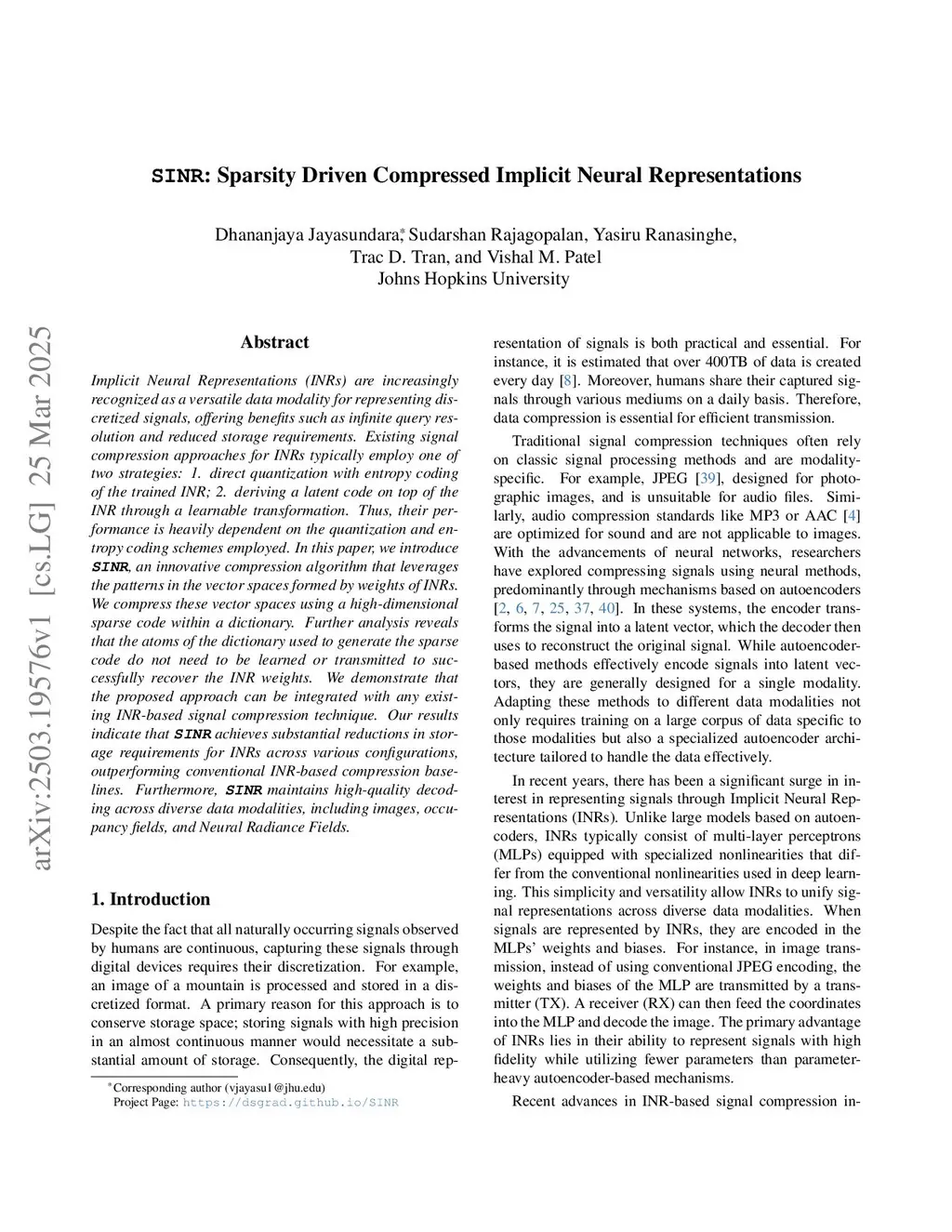 SINR: Sparsity Driven Compressed Implicit Neural Representations