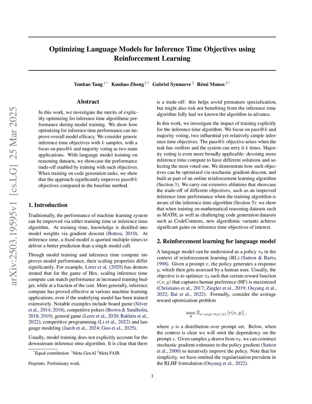 Optimizing Language Models for Inference Time Objectives using Reinforcement Learning