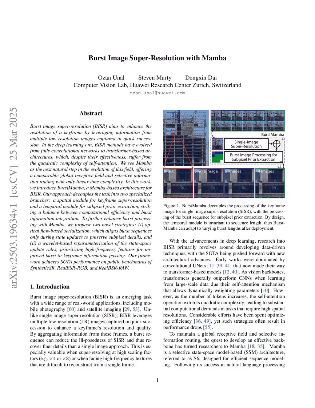 Burst image super-resolution (BISR) aims to enhance the resolution of a keyframe by leveraging information from multiple low-resolution images captured in quick succession. In the deep learning era, BISR methods have evolved from fully convolutional networks to transformer-based architectures, which, despite their effectiveness, suffer from the quadratic complexity of self-attention. We see Mamba as the next natural step in the evolution of this field, offering a comparable global receptive field and selective information routing with only linear time complexity. In this work, we introduce BurstMamba, a Mamba-based architecture for BISR. Our approach decouples the task into two specialized branches: a spatial module for keyframe super-resolution and a temporal module for subpixel prior extraction, striking a balance between computational efficiency and burst information integration. To further enhance burst processing with Mamba, we propose two novel strategies: (i) optical flow-based serialization, which aligns burst sequences only during state updates to preserve subpixel details, and (ii) a wavelet-based reparameterization of the state-space update rules, prioritizing high-frequency features for improved burst-to-keyframe information passing. Our framework achieves SOTA performance on public benchmarks of SyntheticSR, RealBSR-RGB, and RealBSR-RAW.