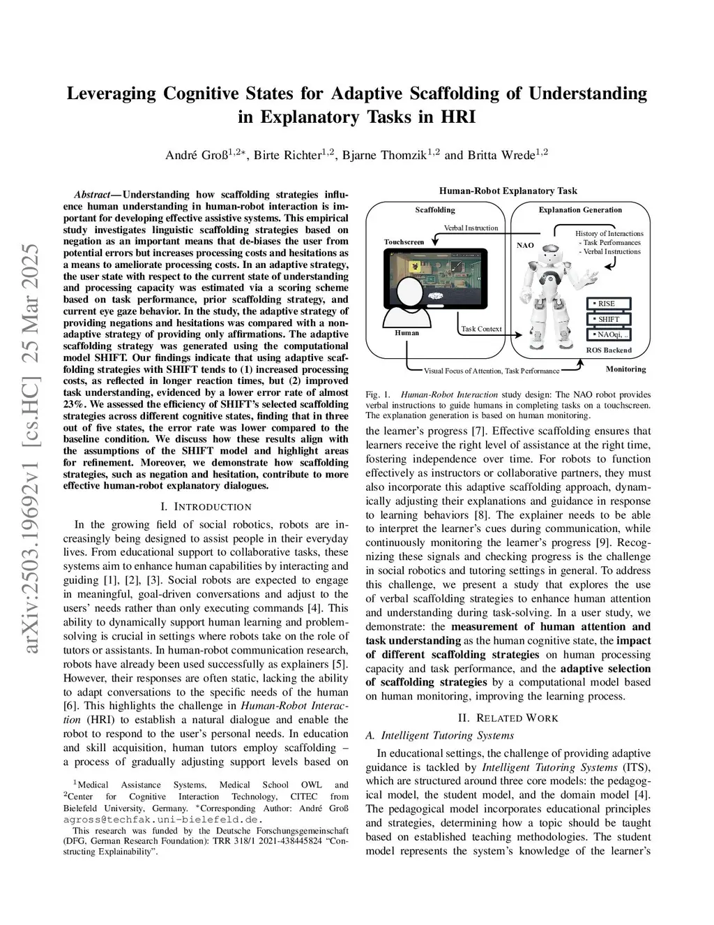 Leveraging Cognitive States for Adaptive Scaffolding of Understanding in Explanatory Tasks in HRI
