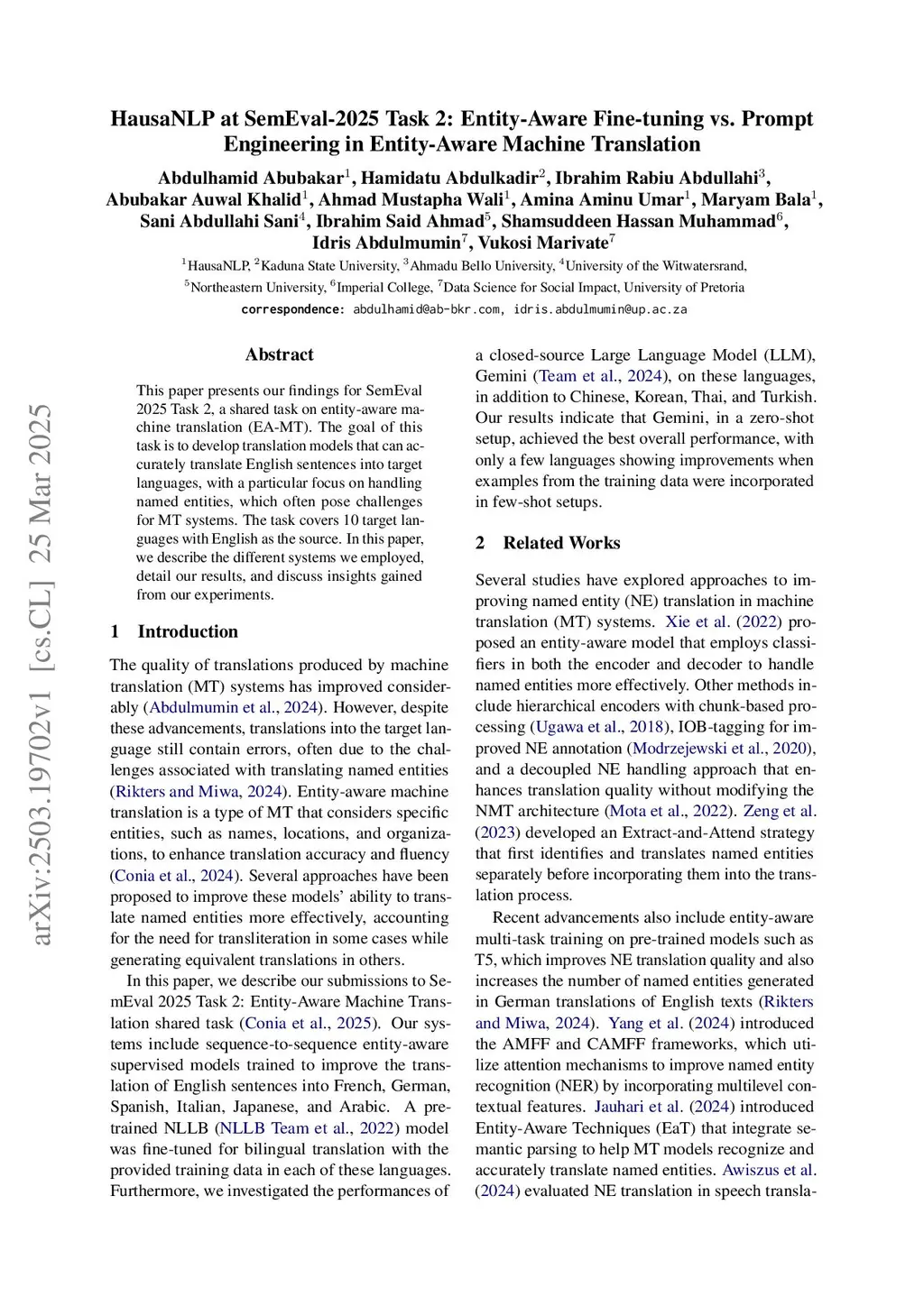 HausaNLP at SemEval-2025 Task 2: Entity-Aware Fine-tuning vs. Prompt Engineering in Entity-Aware Machine Translation