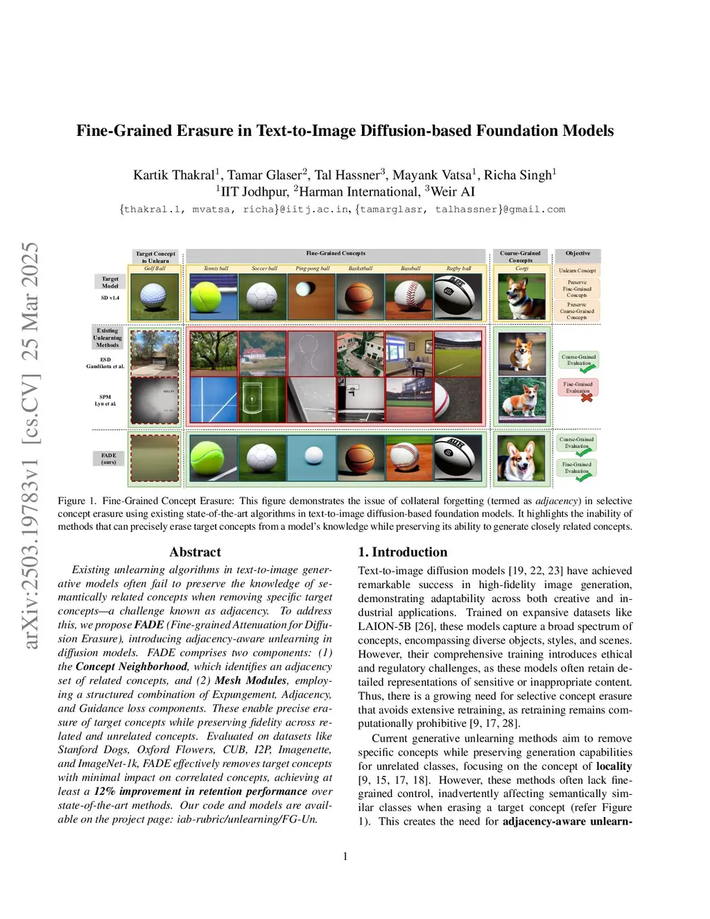 Existing unlearning algorithms in text-to-image generative models often fail to preserve the knowledge of semantically related concepts when removing specific target concepts: a challenge known as adjacency. To address this, we propose FADE (Fine grained Attenuation for Diffusion Erasure), introducing adjacency aware unlearning in diffusion models. FADE comprises two components: (1) the Concept Neighborhood, which identifies an adjacency set of related concepts, and (2) Mesh Modules, employing a structured combination of Expungement, Adjacency, and Guidance loss components. These enable precise erasure of target concepts while preserving fidelity across related and unrelated concepts. Evaluated on datasets like Stanford Dogs, Oxford Flowers, CUB, I2P, Imagenette, and ImageNet1k, FADE effectively removes target concepts with minimal impact on correlated concepts, achieving atleast a 12% improvement in retention performance over state-of-the-art methods.