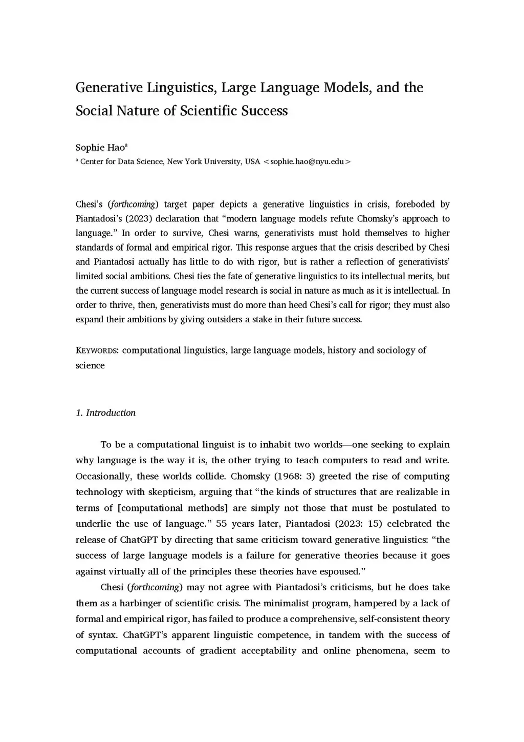 Generative Linguistics, Large Language Models, and the Social Nature of Scientific Success