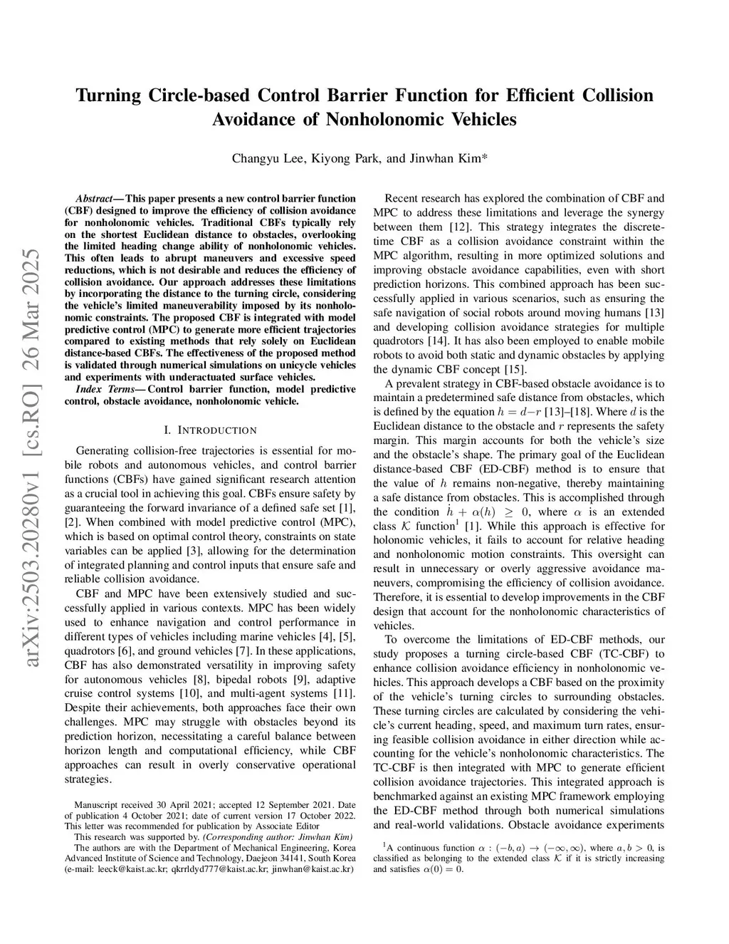 Turning Circle-based Control Barrier Function for Efficient Collision Avoidance of Nonholonomic Vehicles