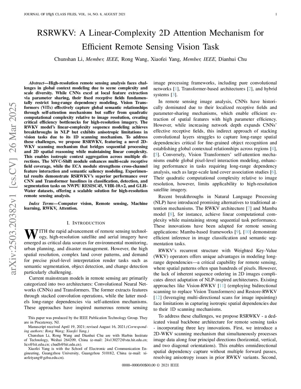 RSRWKV: A Linear-Complexity 2D Attention Mechanism for Efficient Remote Sensing Vision Task