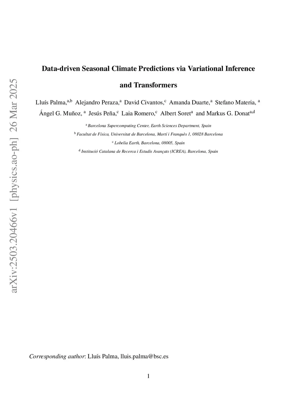 Data-driven Seasonal Climate Predictions via Variational Inference and Transformers