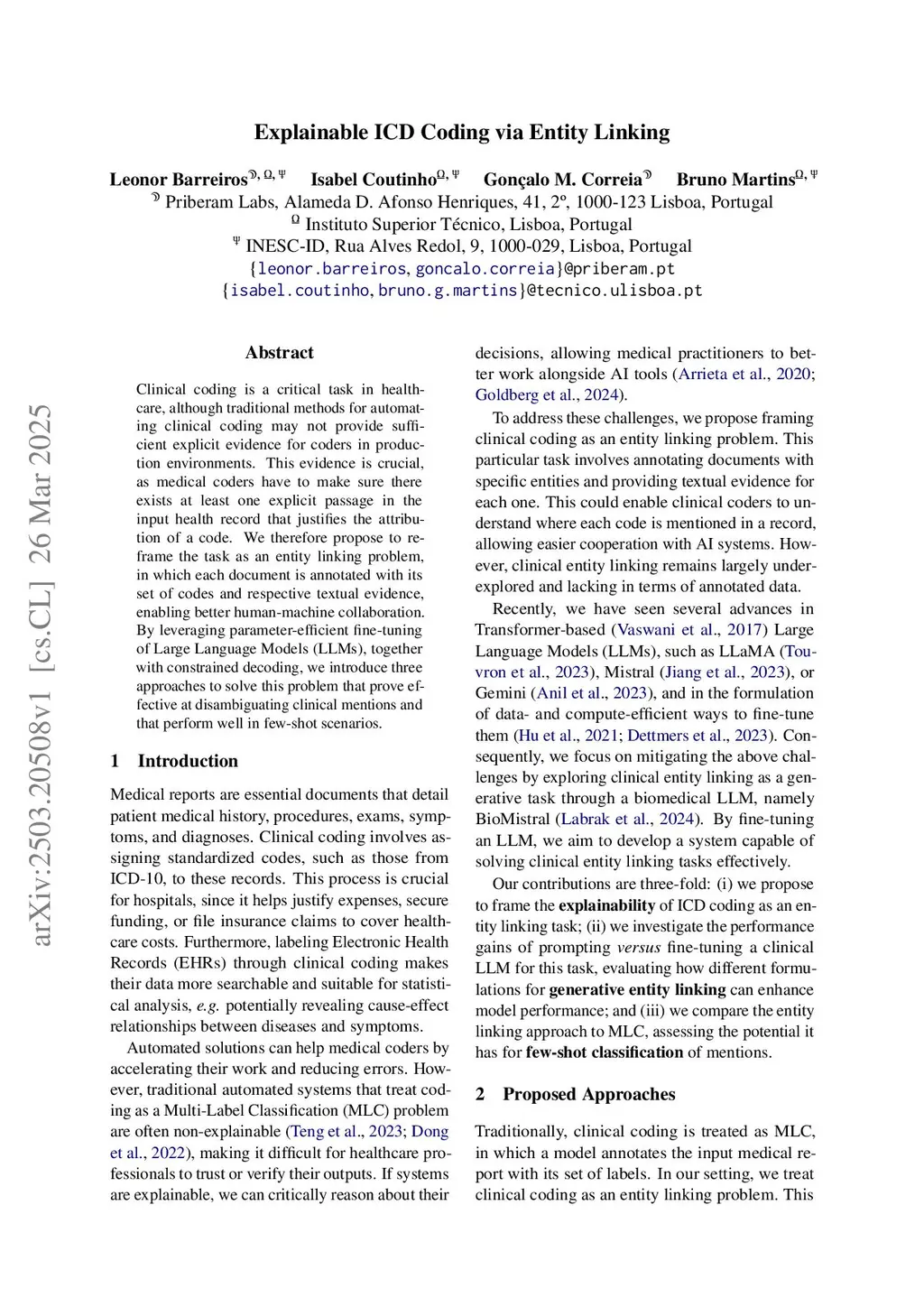 Clinical coding is a critical task in healthcare, although traditional methods for automating clinical coding may not provide sufficient explicit evidence for coders in production environments. This evidence is crucial, as medical coders have to make sure there exists at least one explicit passage in the input health record that justifies the attribution of a code. We therefore propose to reframe the task as an entity linking problem, in which each document is annotated with its set of codes and respective textual evidence, enabling better human-machine collaboration. By leveraging parameter-efficient fine-tuning of Large Language Models (LLMs), together with constrained decoding, we introduce three approaches to solve this problem that prove effective at disambiguating clinical mentions and that perform well in few-shot scenarios.