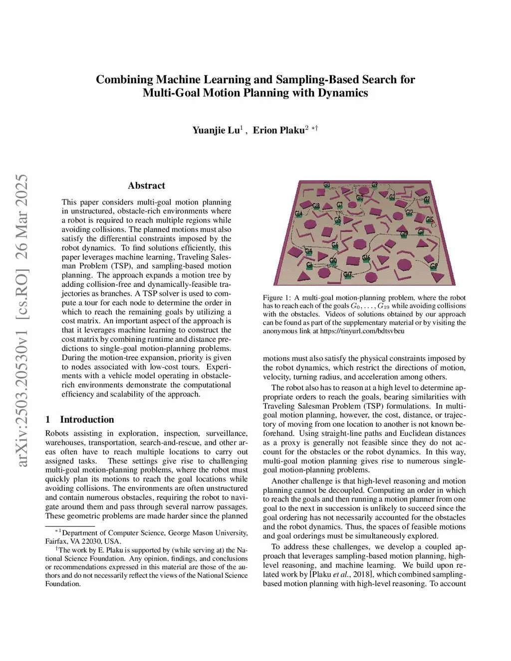 Combining Machine Learning and Sampling-Based Search for Multi-Goal Motion Planning with Dynamics