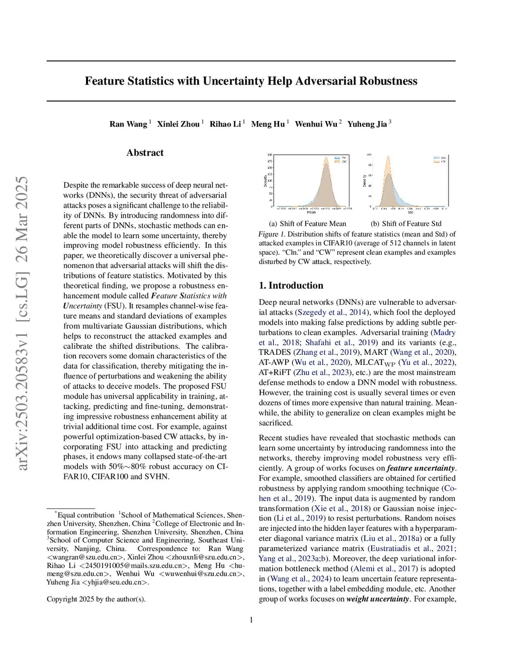 Feature Statistics with Uncertainty Help Adversarial Robustness