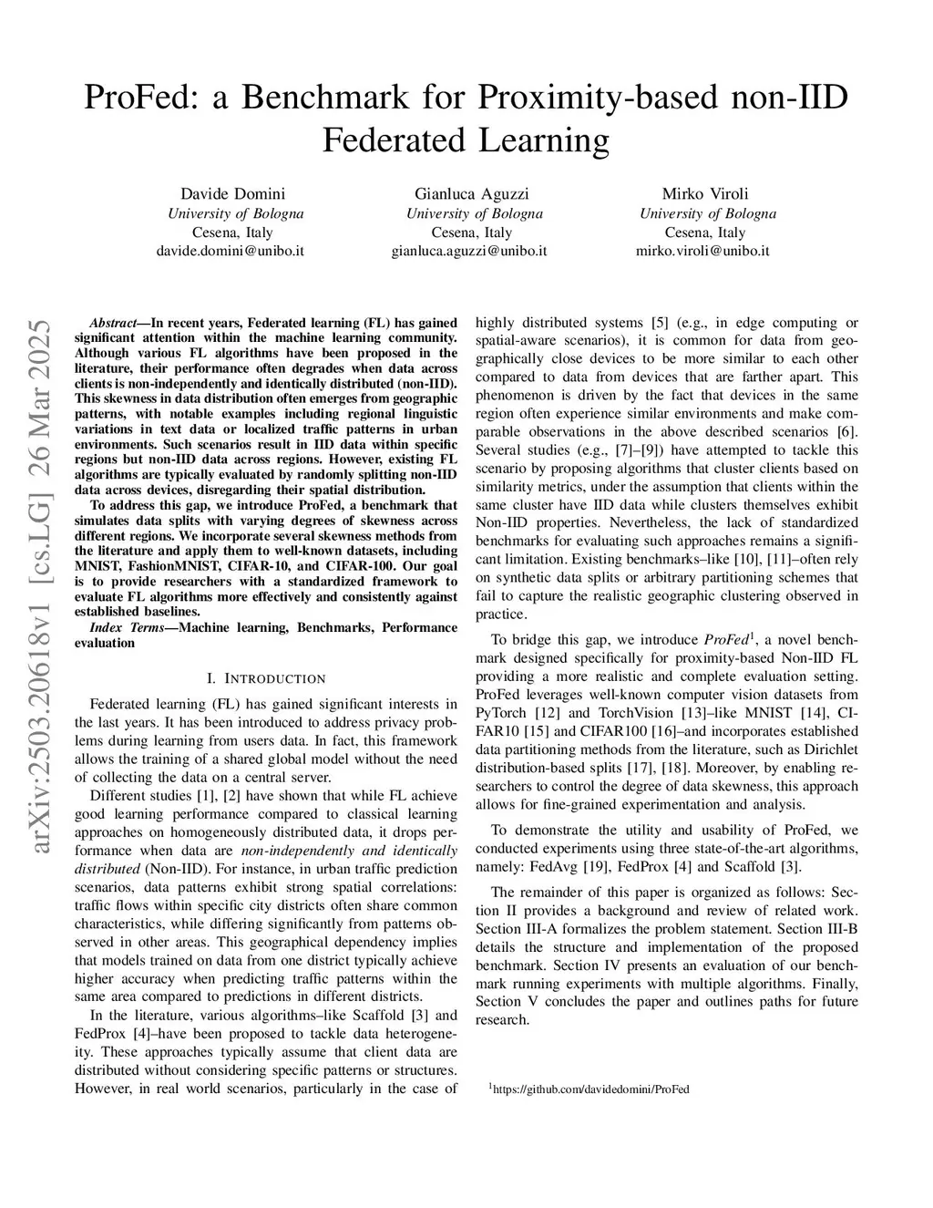 In recent years, cro:flFederated learning (FL) has gained significant attention within the machine learning community. Although various FL algorithms have been proposed in the literature, their performance often degrades when data across clients is non-independently and identically distributed (non-IID). This skewness in data distribution often emerges from geographic patterns, with notable examples including regional linguistic variations in text data or localized traffic patterns in urban environments. Such scenarios result in IID data within specific regions but non-IID data across regions. However, existing FL algorithms are typically evaluated by randomly splitting non-IID data across devices, disregarding their spatial distribution. To address this gap, we introduce ProFed, a benchmark that simulates data splits with varying degrees of skewness across different regions. We incorporate several skewness methods from the literature and apply them to well-known datasets, including MNIST, FashionMNIST, CIFAR-10, and CIFAR-100. Our goal is to provide researchers with a standardized framework to evaluate FL algorithms more effectively and consistently against established baselines.