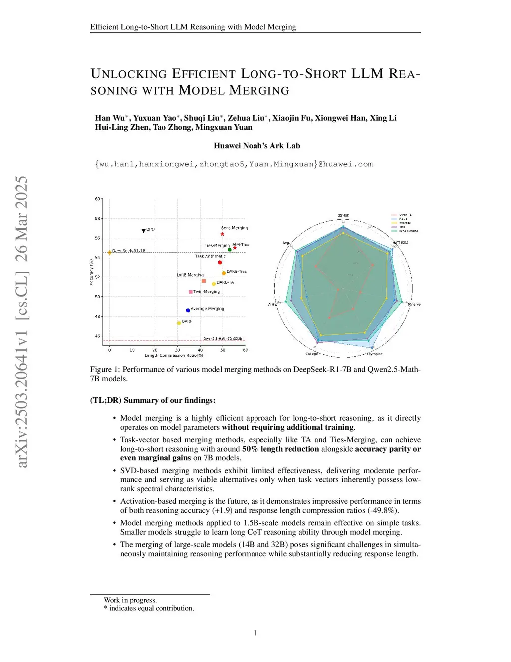 Unlocking Efficient Long-to-Short LLM Reasoning with Model Merging