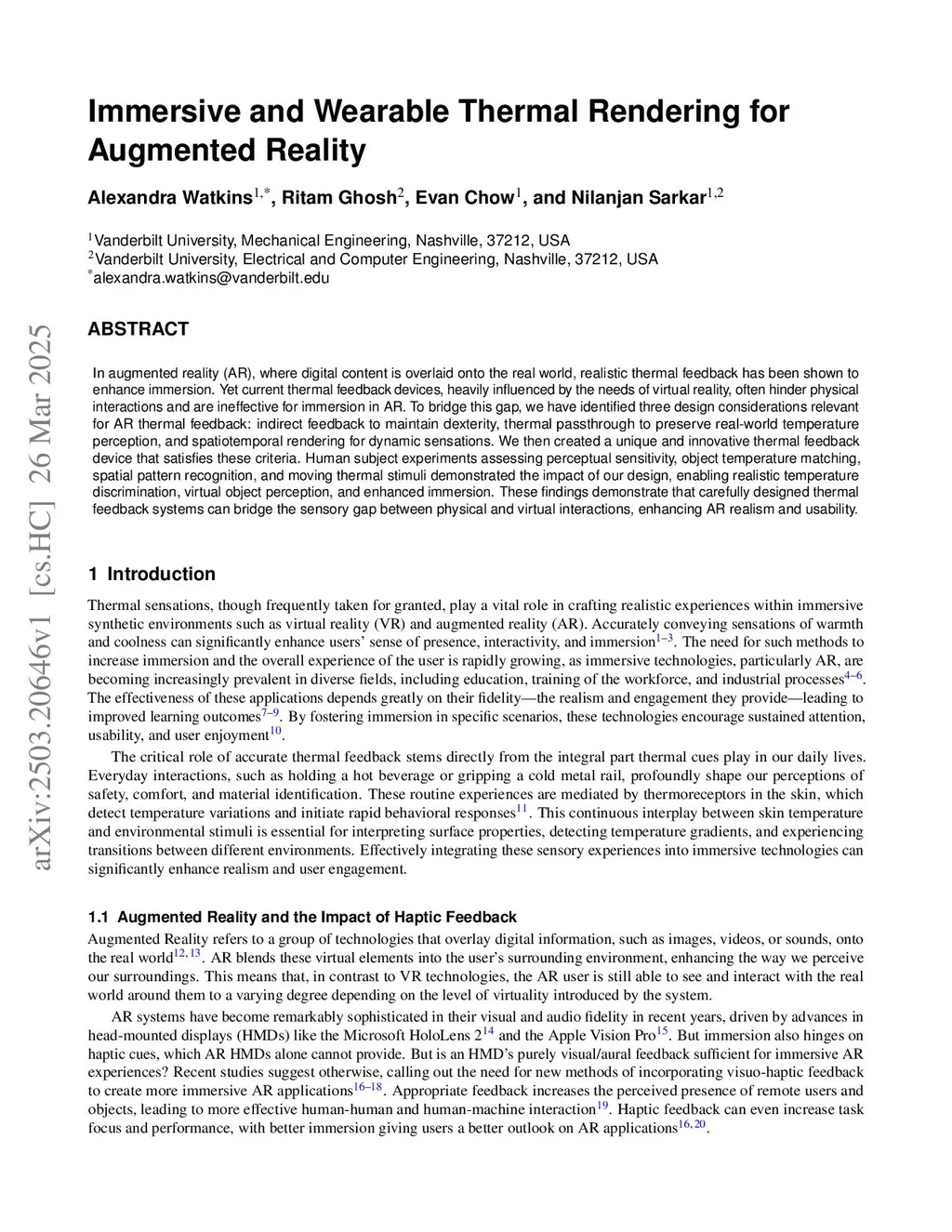 Immersive and Wearable Thermal Rendering for Augmented Reality