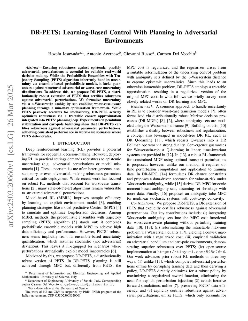 DR-PETS: Learning-Based Control With Planning in Adversarial Environments