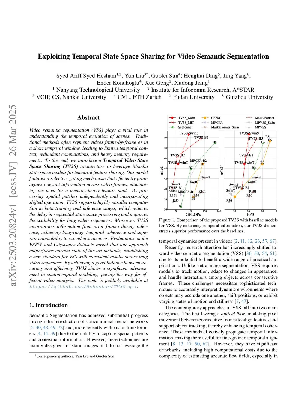 Exploiting Temporal State Space Sharing for Video Semantic Segmentation