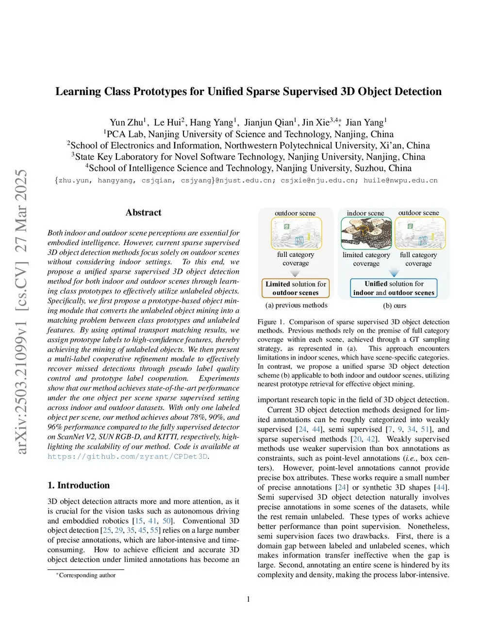 Both indoor and outdoor scene perceptions are essential for embodied intelligence. However, current sparse supervised 3D object detection methods focus solely on outdoor scenes without considering indoor settings. To this end, we propose a unified sparse supervised 3D object detection method for both indoor and outdoor scenes through learning class prototypes to effectively utilize unlabeled objects. Specifically, we first propose a prototype-based object mining module that converts the unlabeled object mining into a matching problem between class prototypes and unlabeled features. By using optimal transport matching results, we assign prototype labels to high-confidence features, thereby achieving the mining of unlabeled objects. We then present a multi-label cooperative refinement module to effectively recover missed detections through pseudo label quality control and prototype label cooperation. Experiments show that our method achieves state-of-the-art performance under the one object per scene sparse supervised setting across indoor and outdoor datasets. With only one labeled object per scene, our method achieves about 78%, 90%, and 96% performance compared to the fully supervised detector on ScanNet V2, SUN RGB-D, and KITTI, respectively, highlighting the scalability of our method. Code is available atthis https URL.
