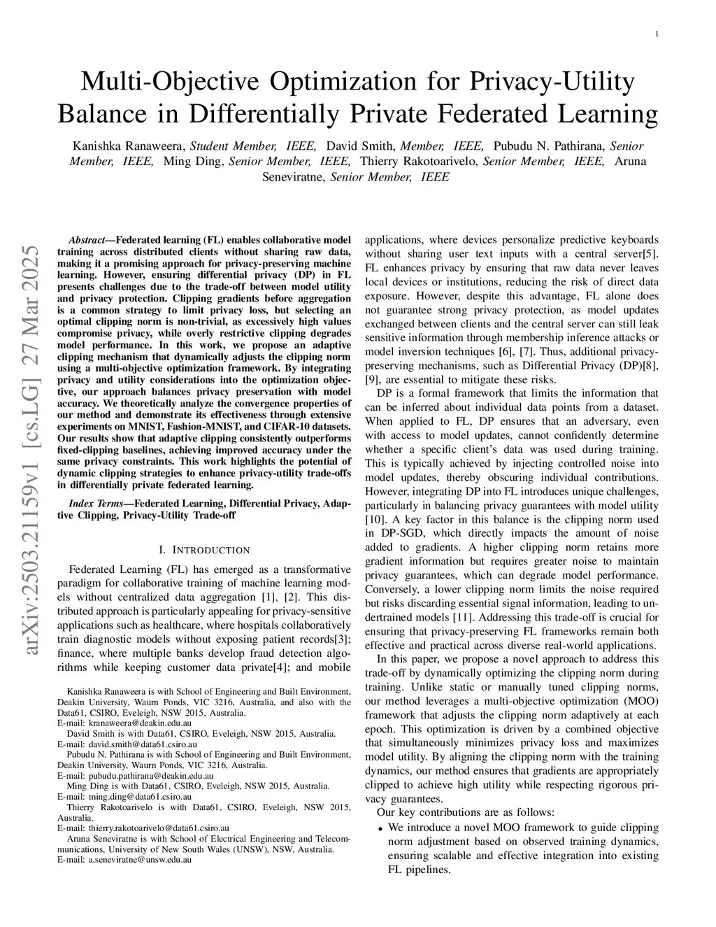 Federated learning (FL) enables collaborative model training across distributed clients without sharing raw data, making it a promising approach for privacy-preserving machine learning. However, ensuring differential privacy (DP) in FL presents challenges due to the trade-off between model utility and privacy protection. Clipping gradients before aggregation is a common strategy to limit privacy loss, but selecting an optimal clipping norm is non-trivial, as excessively high values compromise privacy, while overly restrictive clipping degrades model performance. In this work, we propose an adaptive clipping mechanism that dynamically adjusts the clipping norm using a multi-objective optimization framework. By integrating privacy and utility considerations into the optimization objective, our approach balances privacy preservation with model accuracy. We theoretically analyze the convergence properties of our method and demonstrate its effectiveness through extensive experiments on MNIST, Fashion-MNIST, and CIFAR-10 datasets. Our results show that adaptive clipping consistently outperforms fixed-clipping baselines, achieving improved accuracy under the same privacy constraints. This work highlights the potential of dynamic clipping strategies to enhance privacy-utility trade-offs in differentially private federated learning.