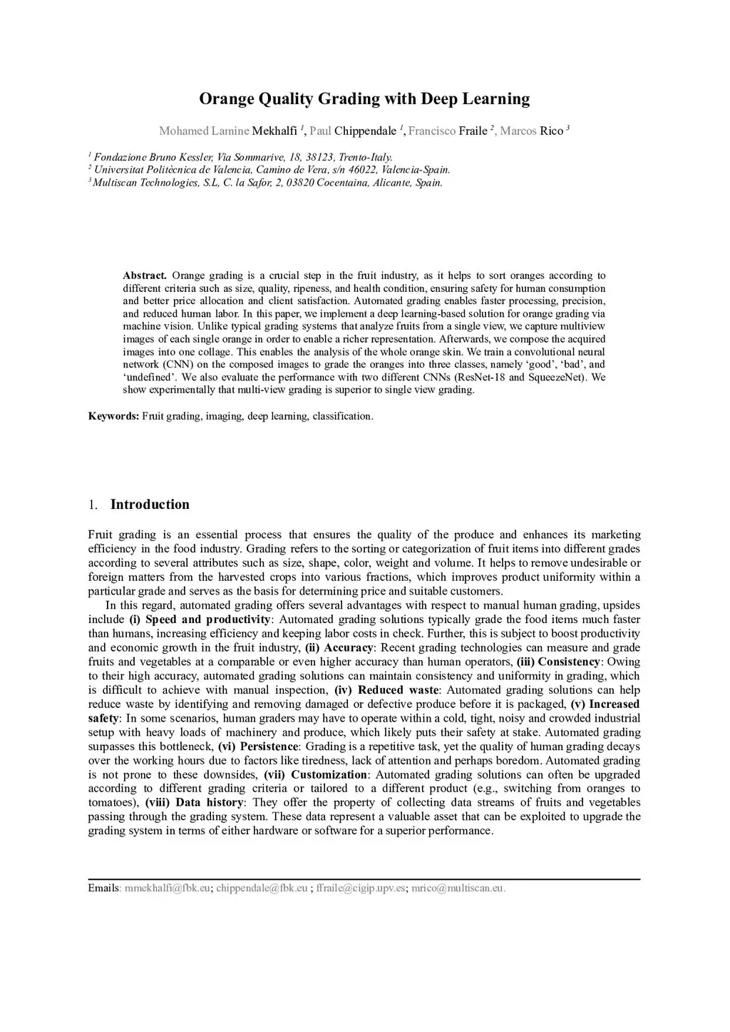Orange grading is a crucial step in the fruit industry, as it helps to sort oranges according to different criteria such as size, quality, ripeness, and health condition, ensuring safety for human consumption and better price allocation and client satisfaction. Automated grading enables faster processing, precision, and reduced human labor. In this paper, we implement a deep learning-based solution for orange grading via machine vision. Unlike typical grading systems that analyze fruits from a single view, we capture multiview images of each single orange in order to enable a richer representation. Afterwards, we compose the acquired images into one collage. This enables the analysis of the whole orange skin. We train a convolutional neural network (CNN) on the composed images to grade the oranges into three classes, namely good, bad, and undefined. We also evaluate the performance with two different CNNs (ResNet-18 and SqueezeNet). We show experimentally that multi-view grading is superior to single view grading.