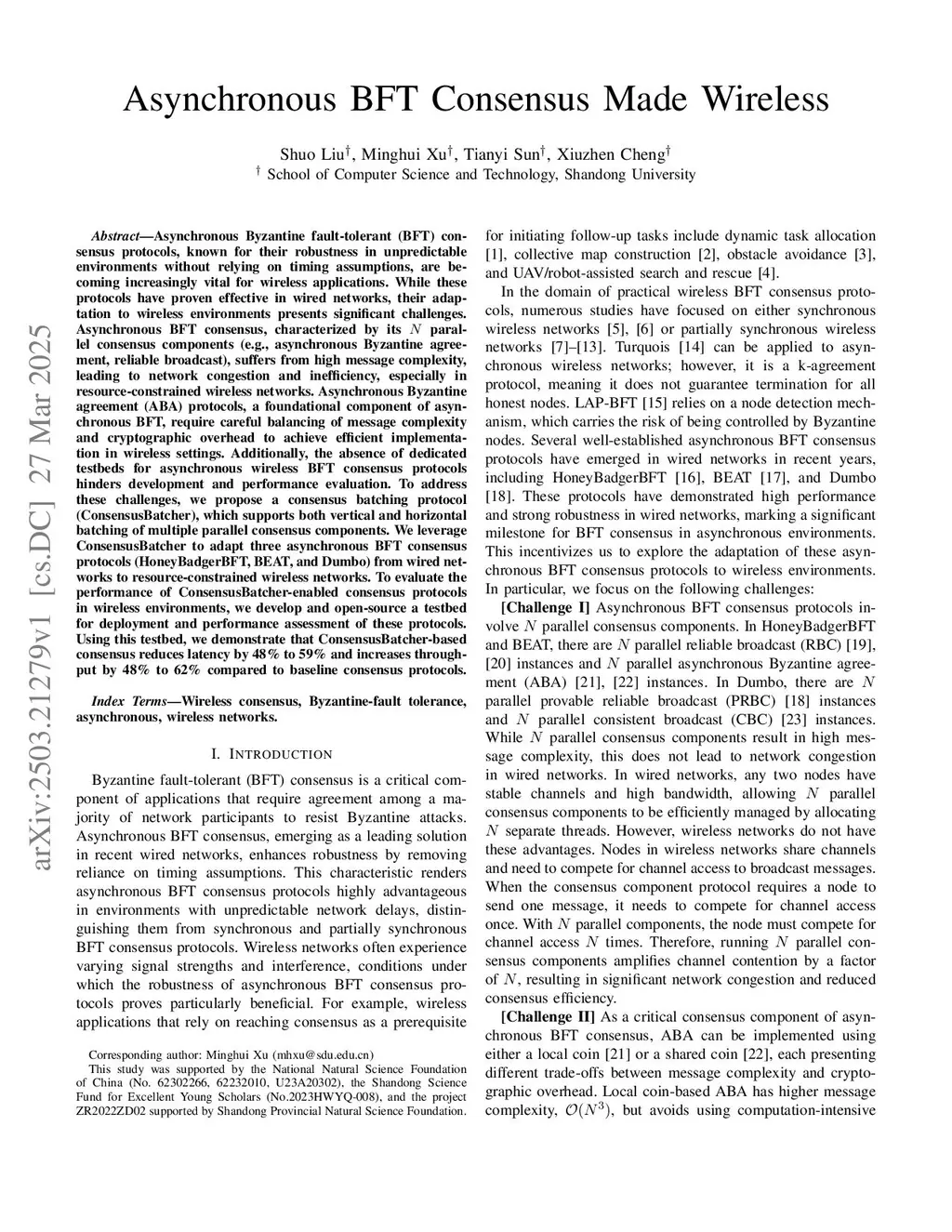 Asynchronous Byzantine fault-tolerant (BFT) consensus protocols, known for their robustness in unpredictable environments without relying on timing assumptions, are becoming increasingly vital for wireless applications. While these protocols have proven effective in wired networks, their adaptation to wireless environments presents significant challenges. Asynchronous BFT consensus, characterized by its N parallel consensus components (e.g., asynchronous Byzantine agreement, reliable broadcast), suffers from high message complexity, leading to network congestion and inefficiency, especially in resource-constrained wireless networks. Asynchronous Byzantine agreement (ABA) protocols, a foundational component of asynchronous BFT, require careful balancing of message complexity and cryptographic overhead to achieve efficient implementation in wireless settings. Additionally, the absence of dedicated testbeds for asynchronous wireless BFT consensus protocols hinders development and performance evaluation. To address these challenges, we propose a consensus batching protocol (ConsensusBatcher), which supports both vertical and horizontal batching of multiple parallel consensus components. We leverage ConsensusBatcher to adapt three asynchronous BFT consensus protocols (HoneyBadgerBFT, BEAT, and Dumbo) from wired networks to resource-constrained wireless networks. To evaluate the performance of ConsensusBatcher-enabled consensus protocols in wireless environments, we develop and open-source a testbed for deployment and performance assessment of these protocols. Using this testbed, we demonstrate that ConsensusBatcher-based consensus reduces latency by 48% to 59% and increases throughput by 48% to 62% compared to baseline consensus protocols.