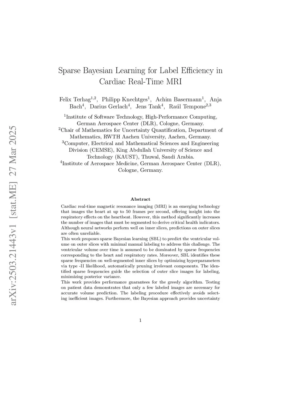 Sparse Bayesian Learning for Label Efficiency in Cardiac Real-Time MRI