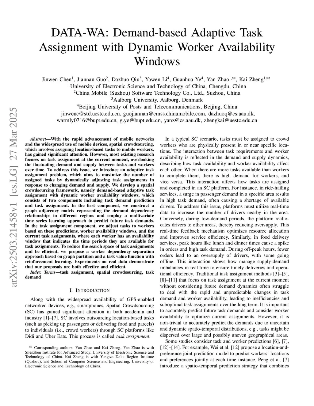 DATA-WA: Demand-based Adaptive Task Assignment with Dynamic Worker Availability Windows