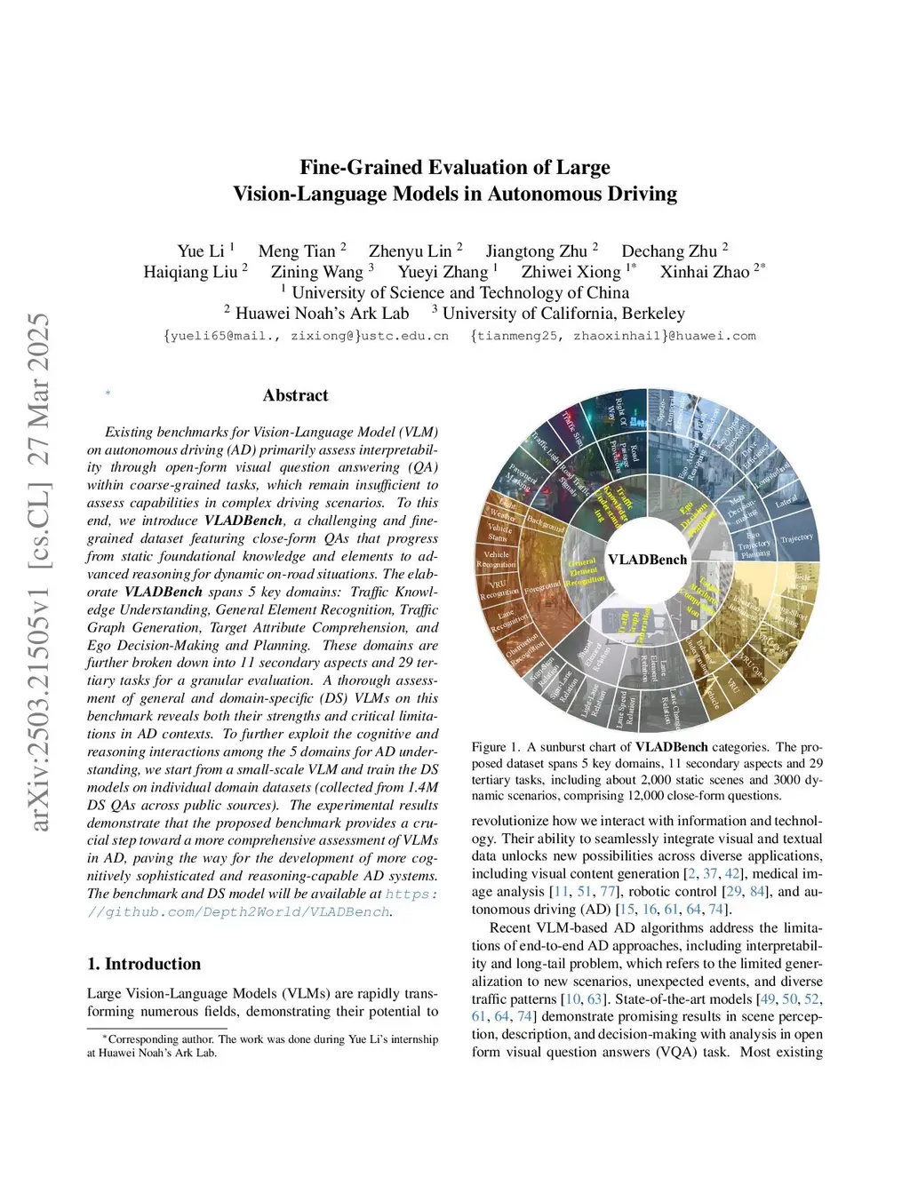 Existing benchmarks for Vision-Language Model (VLM) on autonomous driving (AD) primarily assess interpretability through open-form visual question answering (QA) within coarse-grained tasks, which remain insufficient to assess capabilities in complex driving scenarios. To this end, we introduce , a challenging and fine-grained dataset featuring close-form QAs that progress from static foundational knowledge and elements to advanced reasoning for dynamic on-road situations. The elaborate spans 5 key domains: Traffic Knowledge Understanding, General Element Recognition, Traffic Graph Generation, Target Attribute Comprehension, and Ego Decision-Making and Planning. These domains are further broken down into 11 secondary aspects and 29 tertiary tasks for a granular evaluation. A thorough assessment of general and domain-specific (DS) VLMs on this benchmark reveals both their strengths and critical limitations in AD contexts. To further exploit the cognitive and reasoning interactions among the 5 domains for AD understanding, we start from a small-scale VLM and train the DS models on individual domain datasets (collected from 1.4M DS QAs across public sources). The experimental results demonstrate that the proposed benchmark provides a crucial step toward a more comprehensive assessment of VLMs in AD, paving the way for the development of more cognitively sophisticated and reasoning-capable AD systems.