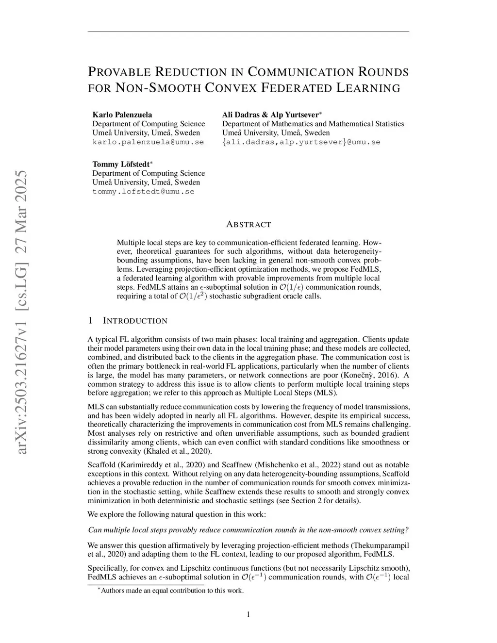 Provable Reduction in Communication Rounds for Non-Smooth Convex Federated Learning