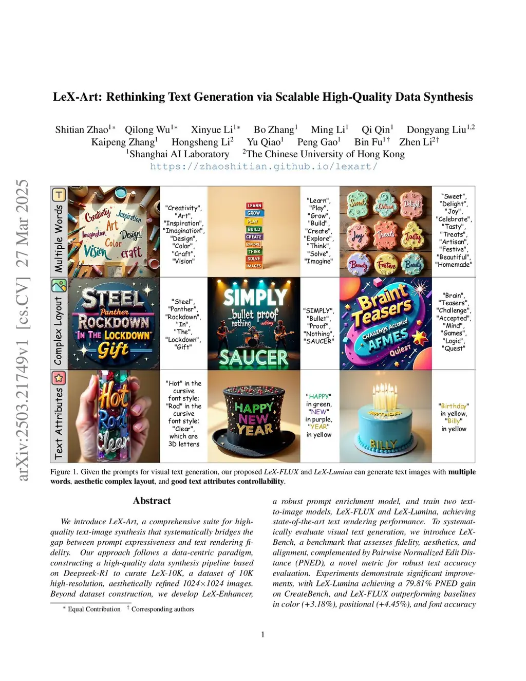 We introduce LeX-Art, a comprehensive suite for high-quality text-image synthesis that systematically bridges the gap between prompt expressiveness and text rendering fidelity. Our approach follows a data-centric paradigm, constructing a high-quality data synthesis pipeline based on Deepseek-R1 to curate LeX-10K, a dataset of 10K high-resolution, aesthetically refined 10241024 images. Beyond dataset construction, we develop LeX-Enhancer, a robust prompt enrichment model, and train two text-to-image models, LeX-FLUX and LeX-Lumina, achieving state-of-the-art text rendering performance. To systematically evaluate visual text generation, we introduce LeX-Bench, a benchmark that assesses fidelity, aesthetics, and alignment, complemented by Pairwise Normalized Edit Distance (PNED), a novel metric for robust text accuracy evaluation. Experiments demonstrate significant improvements, with LeX-Lumina achieving a 79.81% PNED gain on CreateBench, and LeX-FLUX outperforming baselines in color (+3.18%), positional (+4.45%), and font accuracy (+3.81%). Our codes, models, datasets, and demo are publicly available.