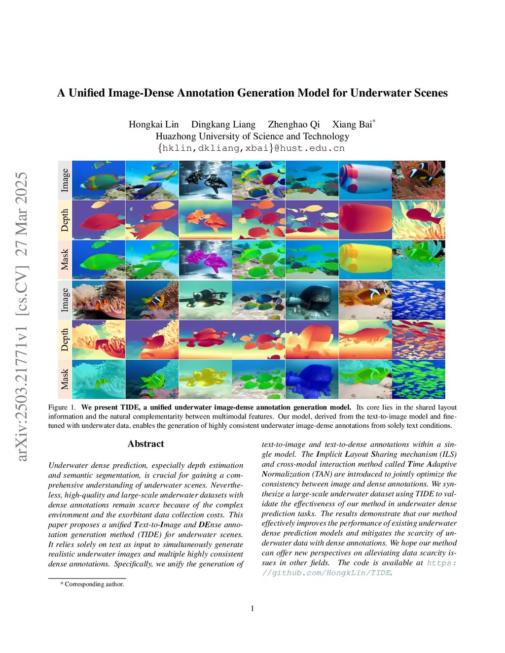 A Unified Image-Dense Annotation Generation Model for Underwater Scenes