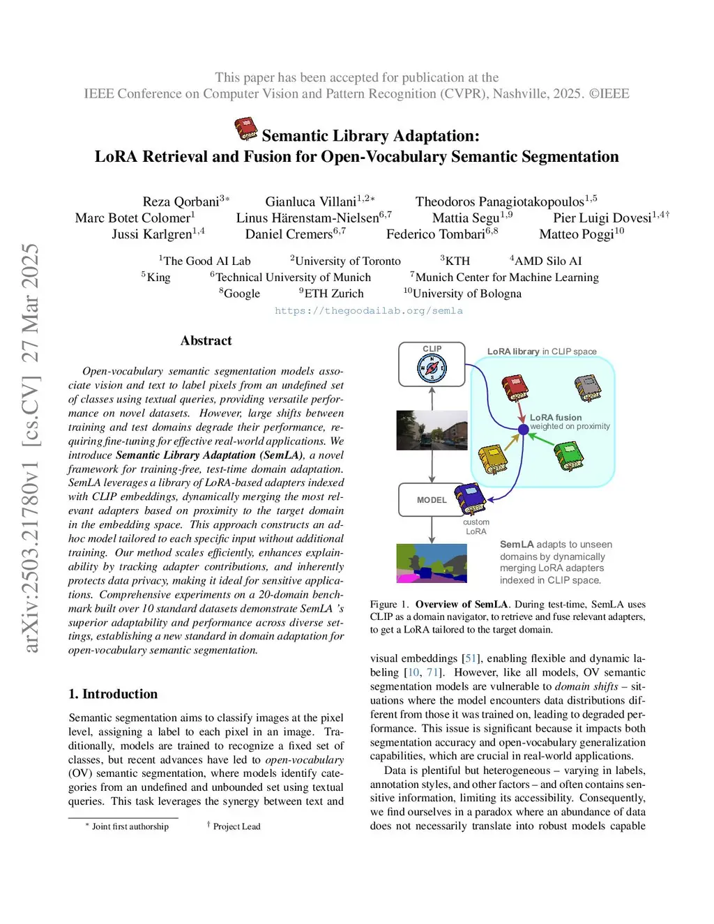Semantic Library Adaptation: LoRA Retrieval and Fusion for Open-Vocabulary Semantic Segmentation