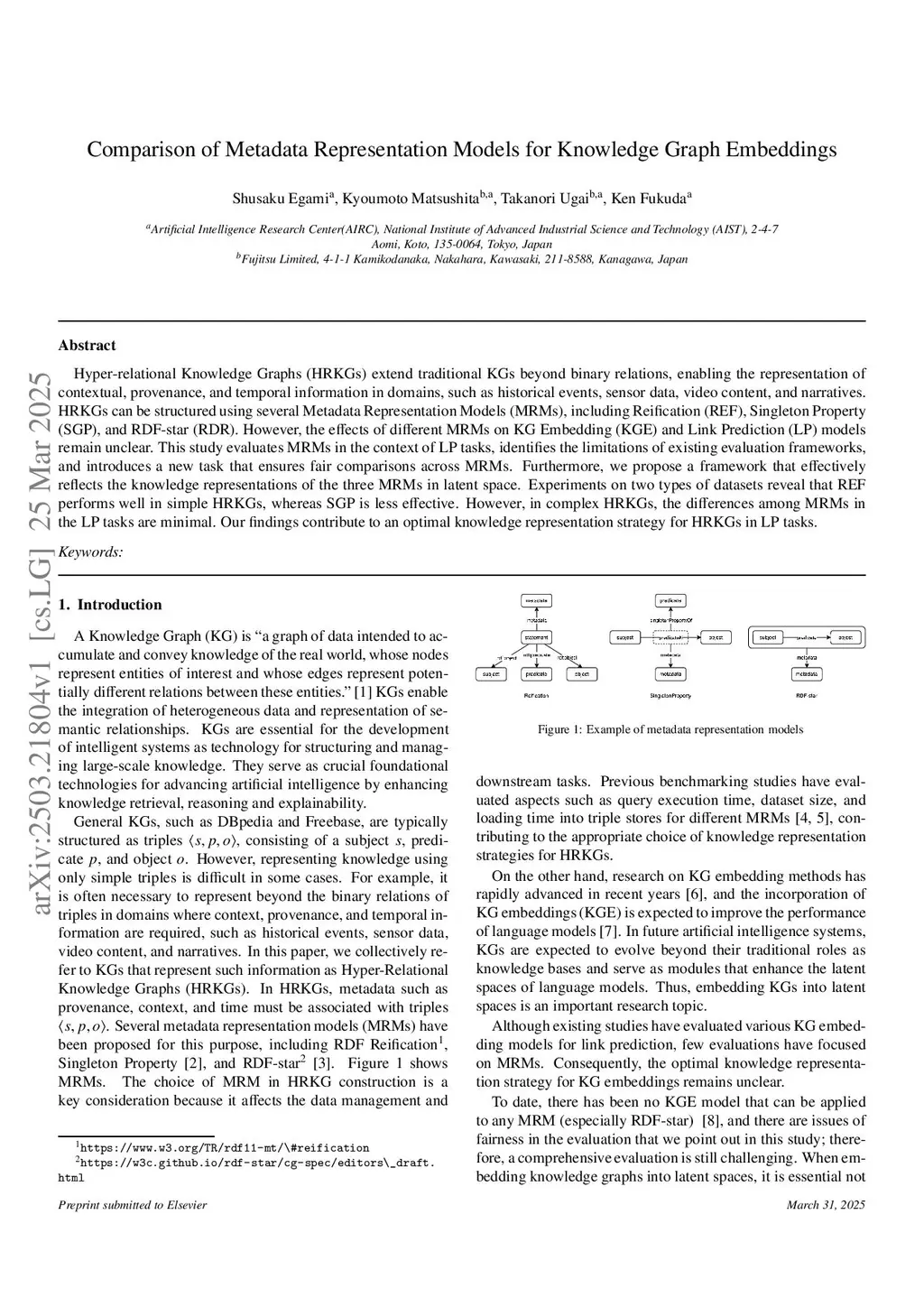 Comparison of Metadata Representation Models for Knowledge Graph Embeddings