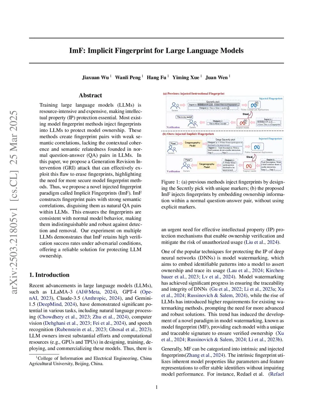 ImF: Implicit Fingerprint for Large Language Models