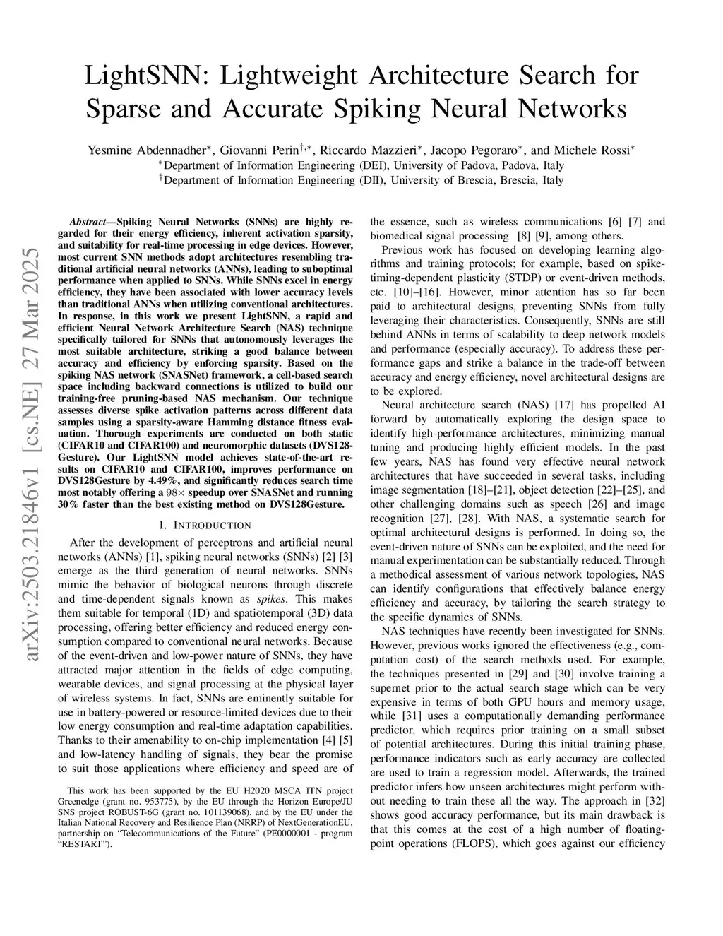 Spiking Neural Networks (SNNs) are highly regarded for their energy efficiency, inherent activation sparsity, and suitability for real-time processing in edge devices. However, most current SNN methods adopt architectures resembling traditional artificial neural networks (ANNs), leading to suboptimal performance when applied to SNNs. While SNNs excel in energy efficiency, they have been associated with lower accuracy levels than traditional ANNs when utilizing conventional architectures. In response, in this work we present LightSNN, a rapid and efficient Neural Network Architecture Search (NAS) technique specifically tailored for SNNs that autonomously leverages the most suitable architecture, striking a good balance between accuracy and efficiency by enforcing sparsity. Based on the spiking NAS network (SNASNet) framework, a cell-based search space including backward connections is utilized to build our training-free pruning-based NAS mechanism. Our technique assesses diverse spike activation patterns across different data samples using a sparsity-aware Hamming distance fitness evaluation. Thorough experiments are conducted on both static (CIFAR10 and CIFAR100) and neuromorphic datasets (DVS128-Gesture). Our LightSNN model achieves state-of-the-art results on CIFAR10 and CIFAR100, improves performance on DVS128Gesture by 4.49\%, and significantly reduces search time most notably offering a speedup over SNASNet and running 30\% faster than the best existing method on DVS128Gesture. Code is available on Github at:this https URL.