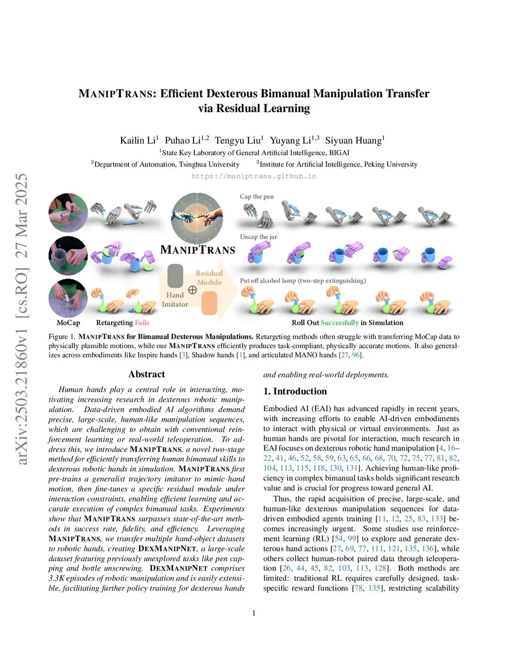 ManipTrans: Efficient Dexterous Bimanual Manipulation Transfer via Residual Learning