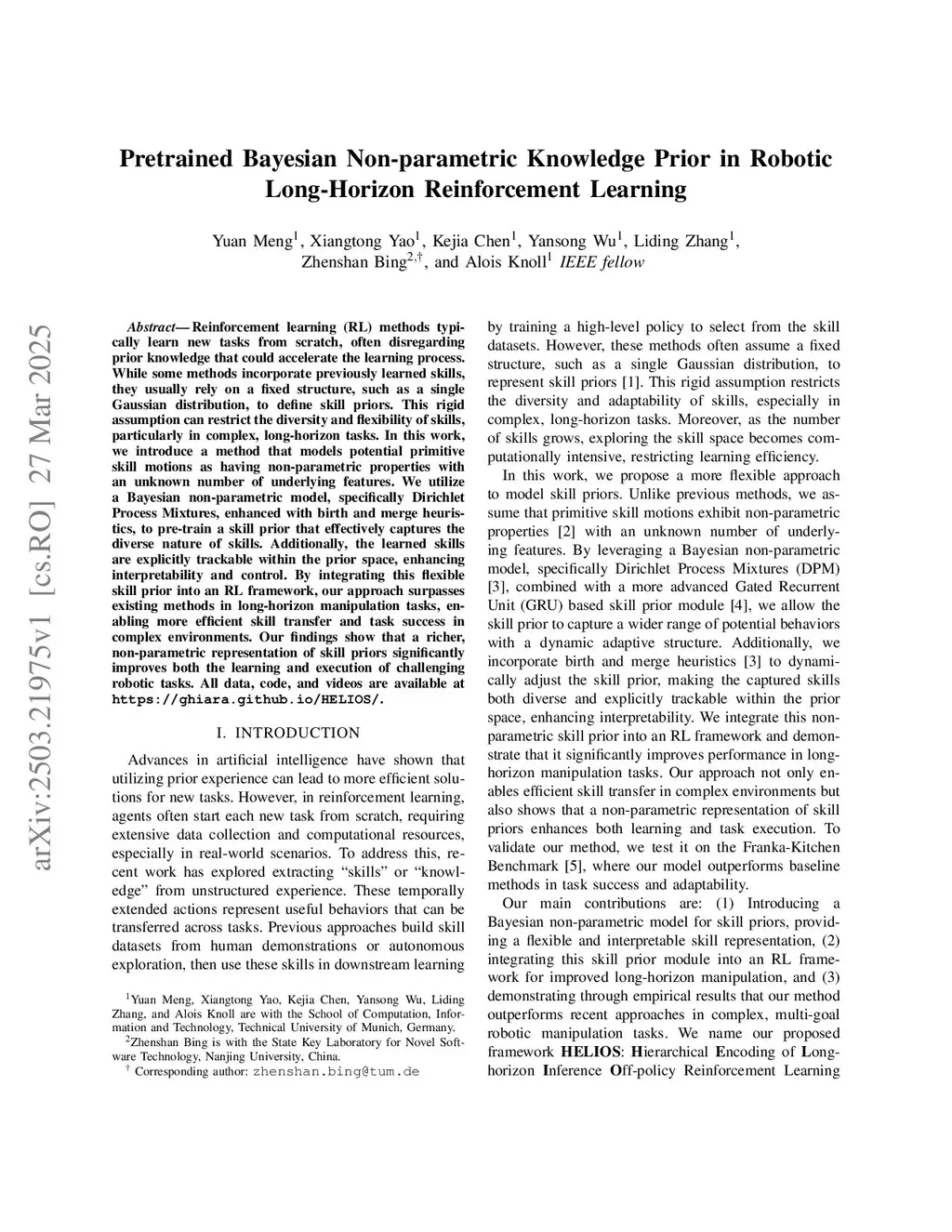 Pretrained Bayesian Non-parametric Knowledge Prior in Robotic Long-Horizon Reinforcement Learning