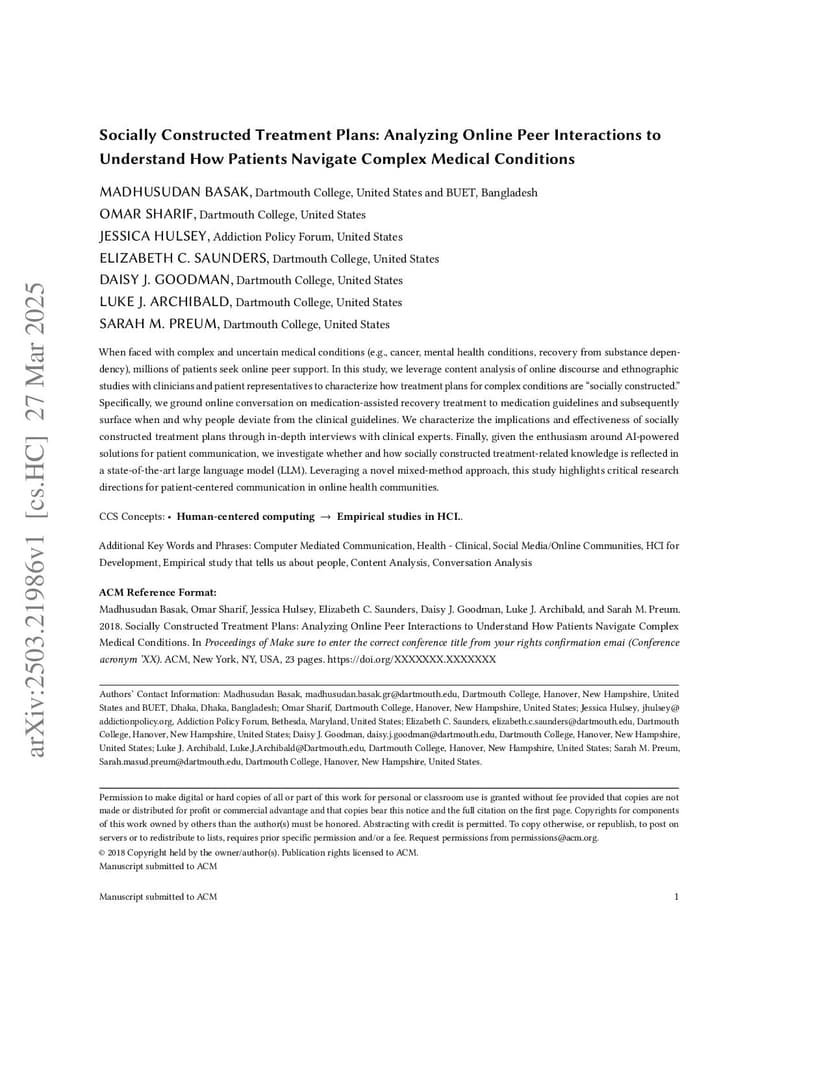 When faced with complex and uncertain medical conditions (e.g., cancer, mental health conditions, recovery from substance dependency), millions of patients seek online peer support. In this study, we leverage content analysis of online discourse and ethnographic studies with clinicians and patient representatives to characterize how treatment plans for complex conditions are "socially constructed." Specifically, we ground online conversation on medication-assisted recovery treatment to medication guidelines and subsequently surface when and why people deviate from the clinical guidelines. We characterize the implications and effectiveness of socially constructed treatment plans through in-depth interviews with clinical experts. Finally, given the enthusiasm around AI-powered solutions for patient communication, we investigate whether and how socially constructed treatment-related knowledge is reflected in a state-of-the-art large language model (LLM). Leveraging a novel mixed-method approach, this study highlights critical research directions for patient-centered communication in online health communities.